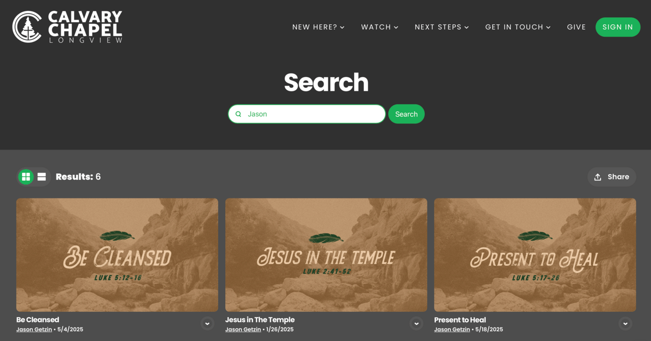 Your Sermon library powered by Nucleus Sermons is a wealth of holy resources. It’s imperative that your church members and site visitors can find exactly what they’re looking for when browsing your content. We’ve recently added Speakers, Topics, Playlists, and expanded Scripture References to the search index in Sermons.