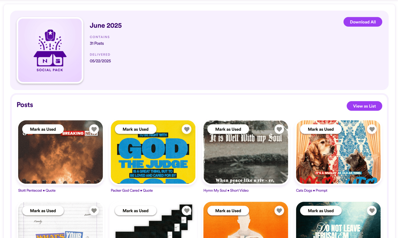 Each month, we publish 31 new social media posts (captions included!) for your church to post on your social accounts. These posts are intentionally designed to encourage spiritual formation and promote engagement with your church online.